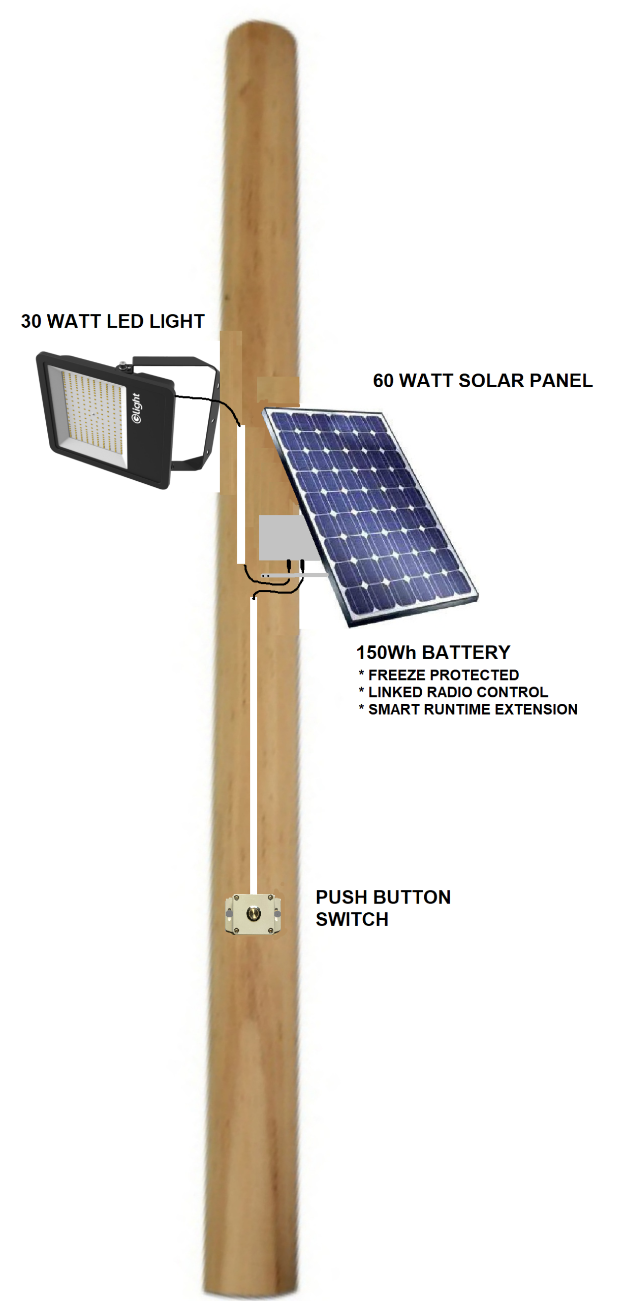 Simply plug into a 170w (or greater) solar panel to provide spectrum adjustable light for growing your plants.